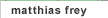 Matthias Frey lic. rer. pol., Marketing und internationale Beziehungen, 1971. Mehrjährige Erfahrung als Projektleiter und Produktmanager in einem multinationalen Unternehmen der Medizinaltechnologie. Erfahrung in der Betreuung von Projekten und Produkten in den Phasen der Entwicklung, der Markteinführung und der Produktpflege auf internationalen Märkten. Generalist mit Schwerpunkt Marketing. Marketing- und Strategieberatung von Industrie- und Dienstleistungsbetrieben (Medizinaltechnologie, Handel, Bau, NPO's). Einsicht und Verständnis in verschiedene Kulturen durch Zusammenarbeit und Reisen in Ost- und Westeuropa, Nord- und Mittelamerika sowie Asien und Australien.